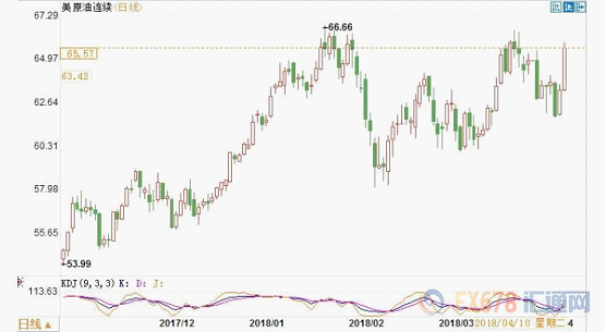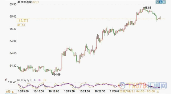 美国WTI 5月原油期货电子盘价格周二(4月10日)收盘上涨2.15美元,涨幅3.6%,报65.57美元/桶。周二油价升至两周高位,因市场越来越担心中东地区可能爆发军事行动,令石油供应受到影响。