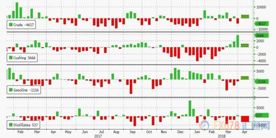 API公布数据显示,截至4月6日当周,美国原油库存增加175.8万桶,至4.291亿桶,分析师预估为增加22万桶。上周汽油库存增加200.5万桶,调查预估为减少142万桶。精炼油库存减少384.9万桶,预估为减少38万桶。